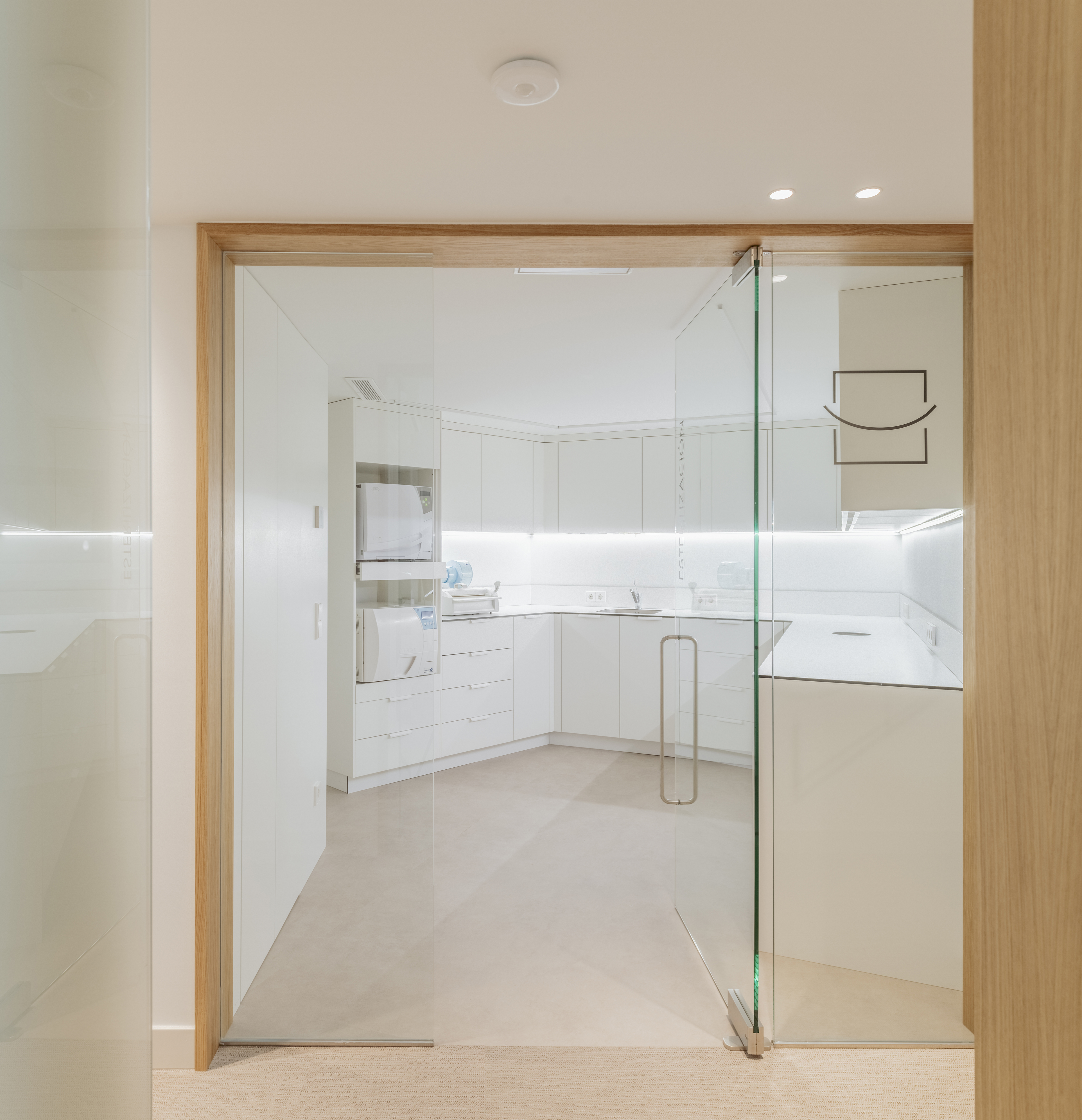 Además, reorganizamos y zonificamos cuidadosamente el área clínica existente, planteando una reforma de alta calidad donde destacan la serenidad y la elegancia como ejes de diseño. Un proyecto exprés, pero pensado al detalle, que refleja nuestra manera de entender la arquitectura: espacios que cuidan a quienes los habitan.
