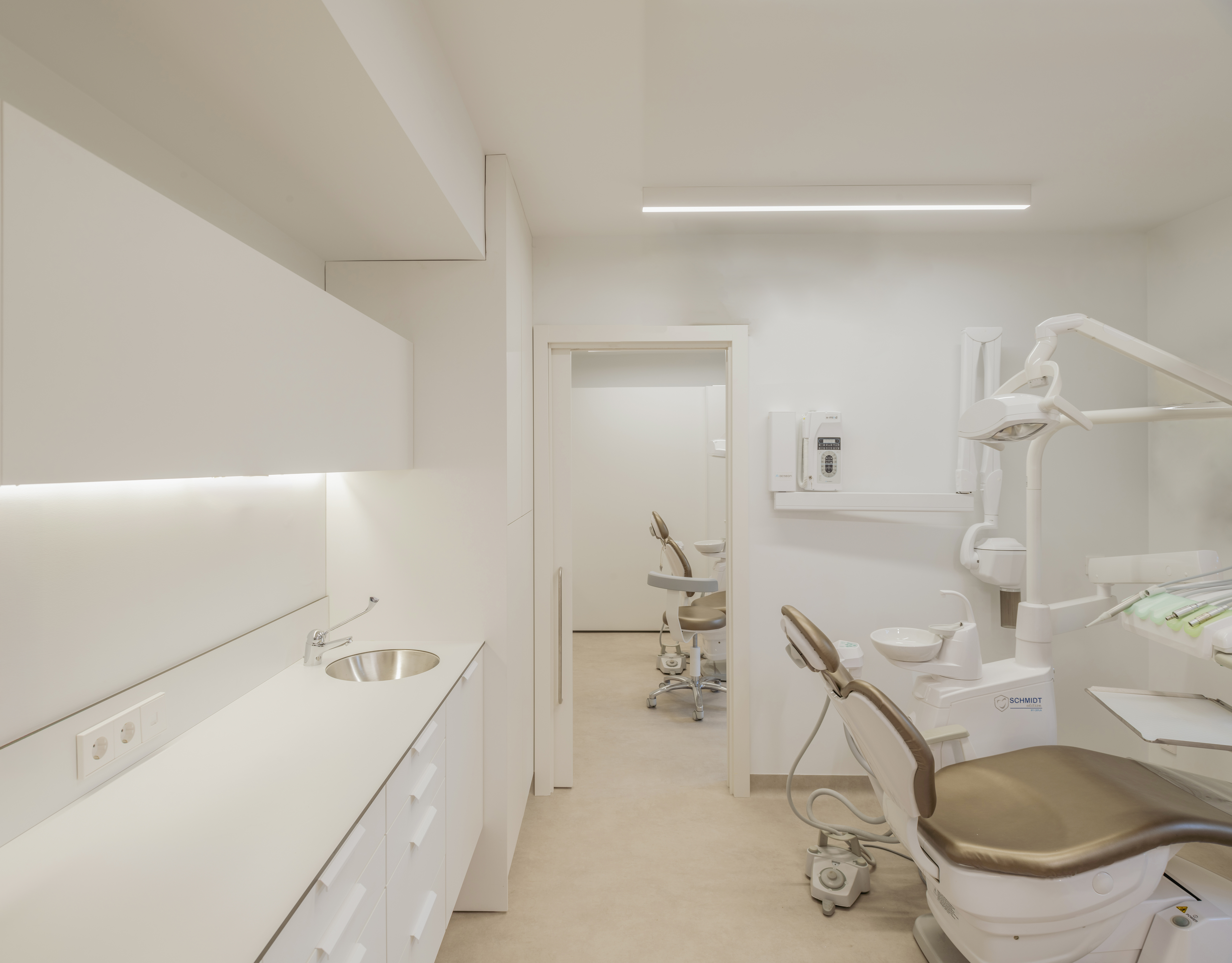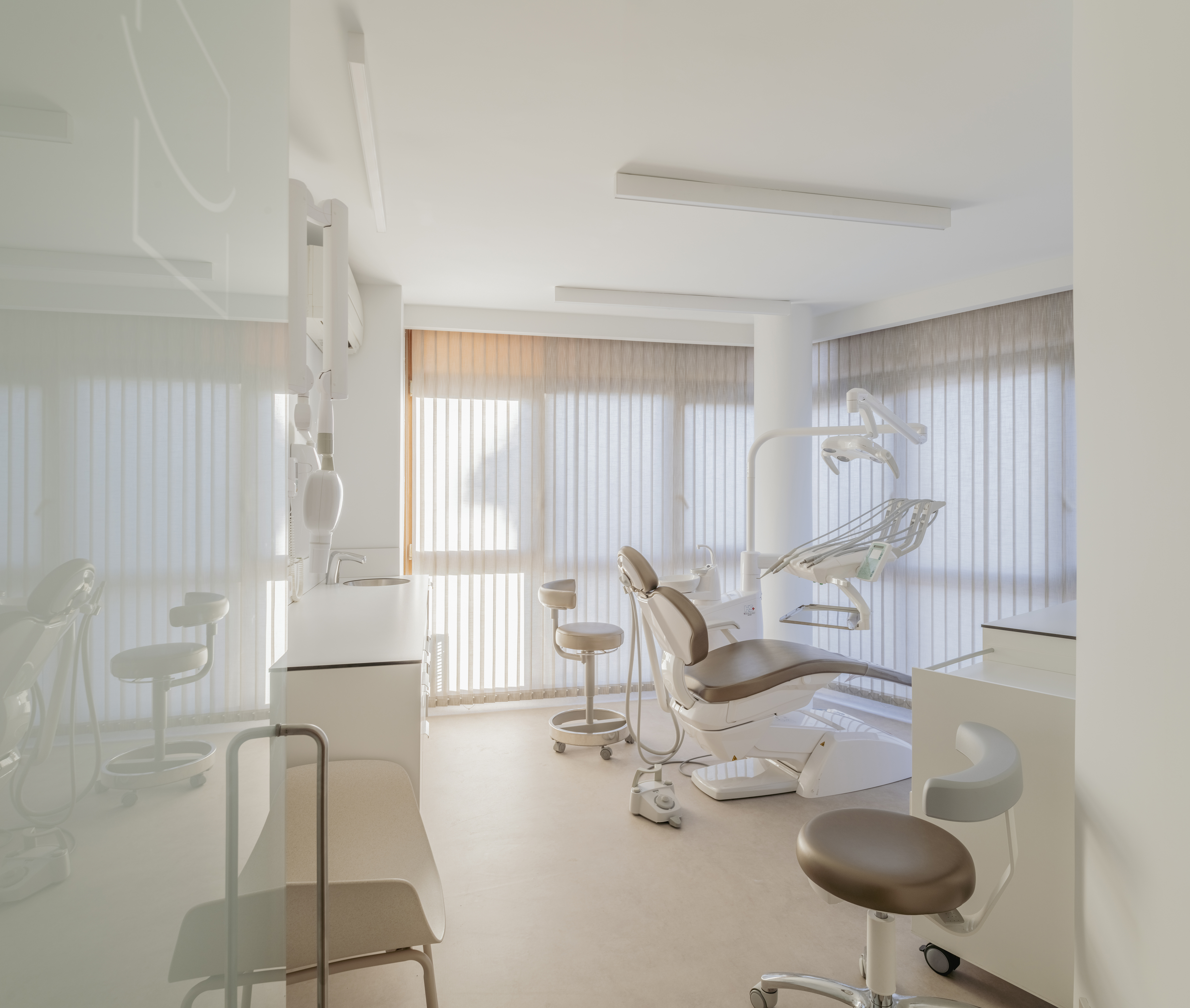 2025Proyecto de reforma y ampliación de una clínica dental de referencia en Torrelodones, un reto desarrollado en tan solo dos meses, sobre una superficie aproximada de 250 m². La intervención se centra en mejorar la experiencia del paciente desde el primer contacto con el edificio: diseñamos un nuevo acceso desde la vía pública que conduce a un espacio acogedor compuesto por recepción, despacho y sala de espera.
