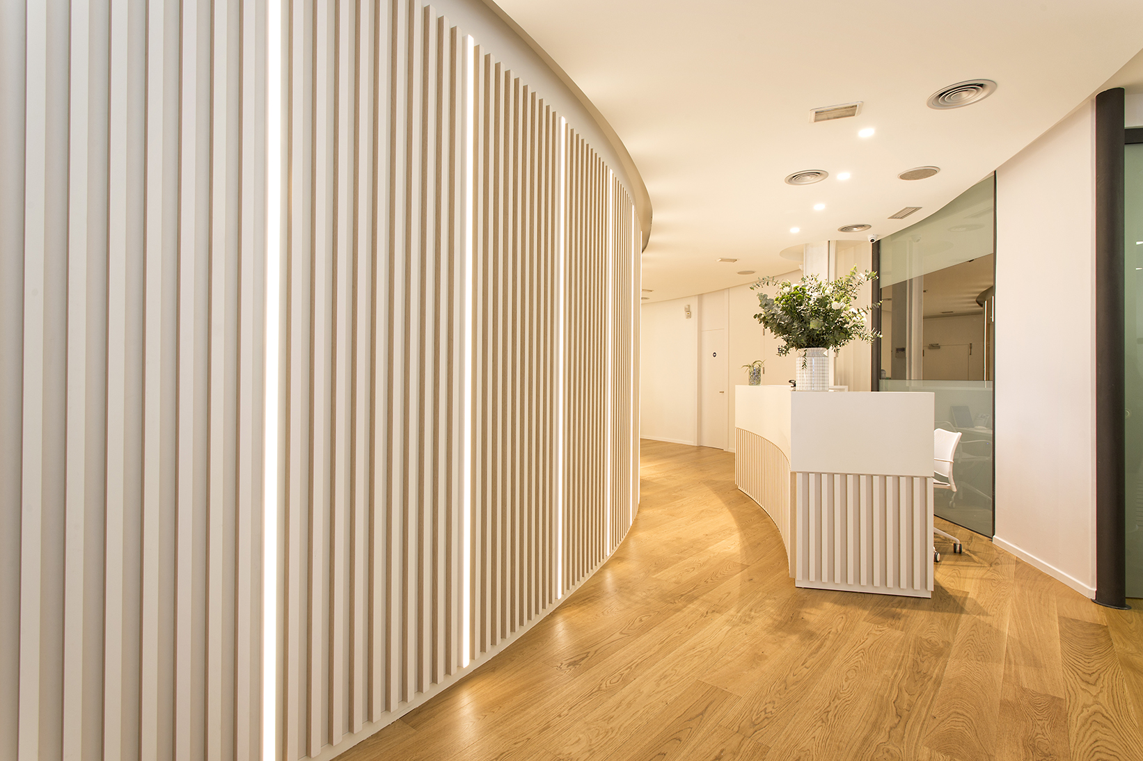Situada en plena Gran Vía, la ampliación surge con la intención de crear un pequeño centro de formación, así como dotar al conjunto de otro quirófano, un despacho, un gabinete de primeras consultas, así como unos despachos de gerencia y administración. El ambicioso programa y la escasez de superficie para todo ello nos llevaron a crear un proyecto flexible, donde los espacios puedan tener varias funciones, y los recorridos puedan ser múltiples, para apoyar dicha versatilidad.